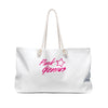 This Weekender Bag is the perfect companion for your weekend escapades or casual getaways. Crafted from 100% spun polyester, it showcases a chic design that effortlessly combines style and functionality. The spacious dimensions (24" x 13") offer plenty of room for all your essentials, while the cream-colored rope handles add a touch of elegance. Ideal for beach trips, yoga classes, or overnight stays, this bag sets a relaxed yet trendy vibe that fits seamlessly into your lifestyle. Whether you're heading to a friend's house or planning a vacation, this bag makes a thoughtful gift for friends, family, or yourself. Perfect for summer outings, holidays, or any occasion that calls for a touch of adventure!
